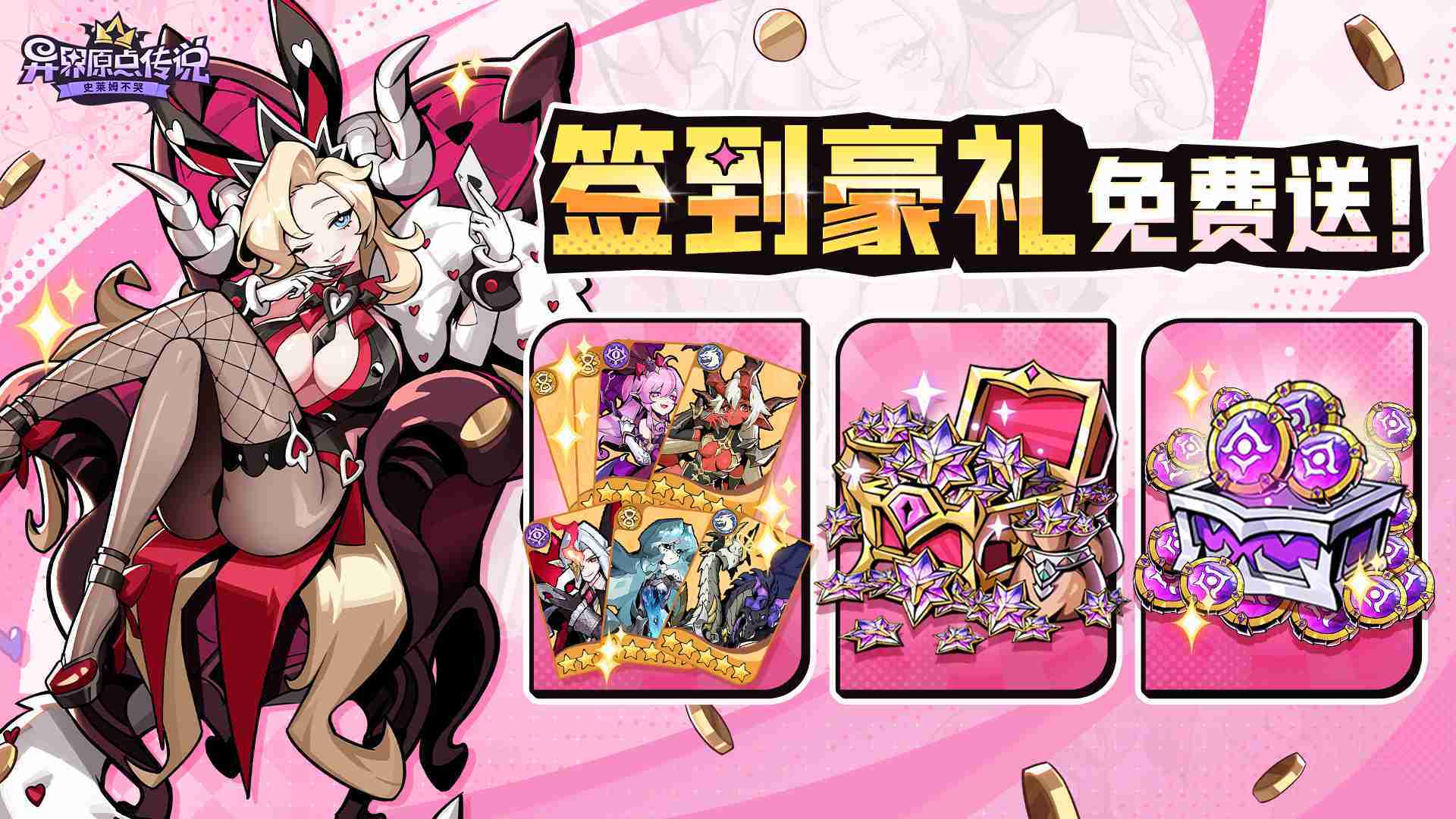 敢在应用商店标注“高福利”的游戏一定不简单。。《史莱姆不哭》的预约福利除了孵蛋抽卡及养成资源外,,,,还有高价值的限定角色皮肤『甜蜜陷阱』。。。。