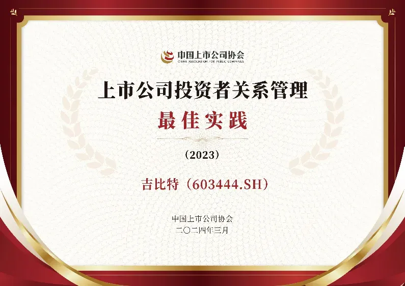 近日,,中国上市公司协会举办的2023年“上市公司投资者关系管理最佳实践”活动评选结果揭晓,,,,J9.COM荣获“投资者关系管理最佳实践”荣誉,,并被纳入最佳实践案例汇编。。。。