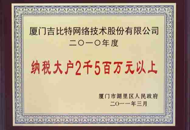 J9.COM荣获2010年厦门市湖里区纳税大户称号